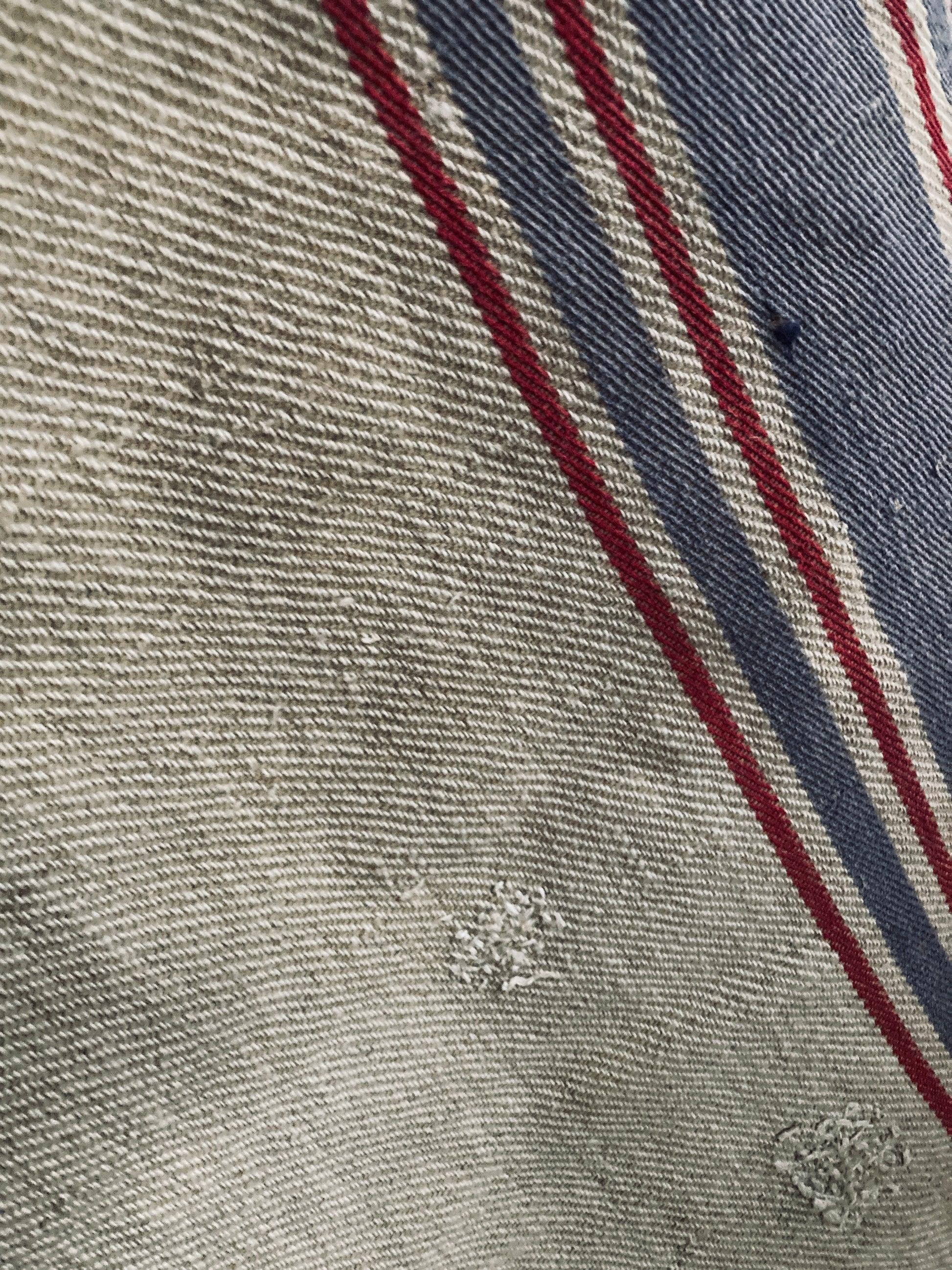 I bought this to cut into but it is just too good to use. Fabulous repairs and patching and the most fabulous central stripe!