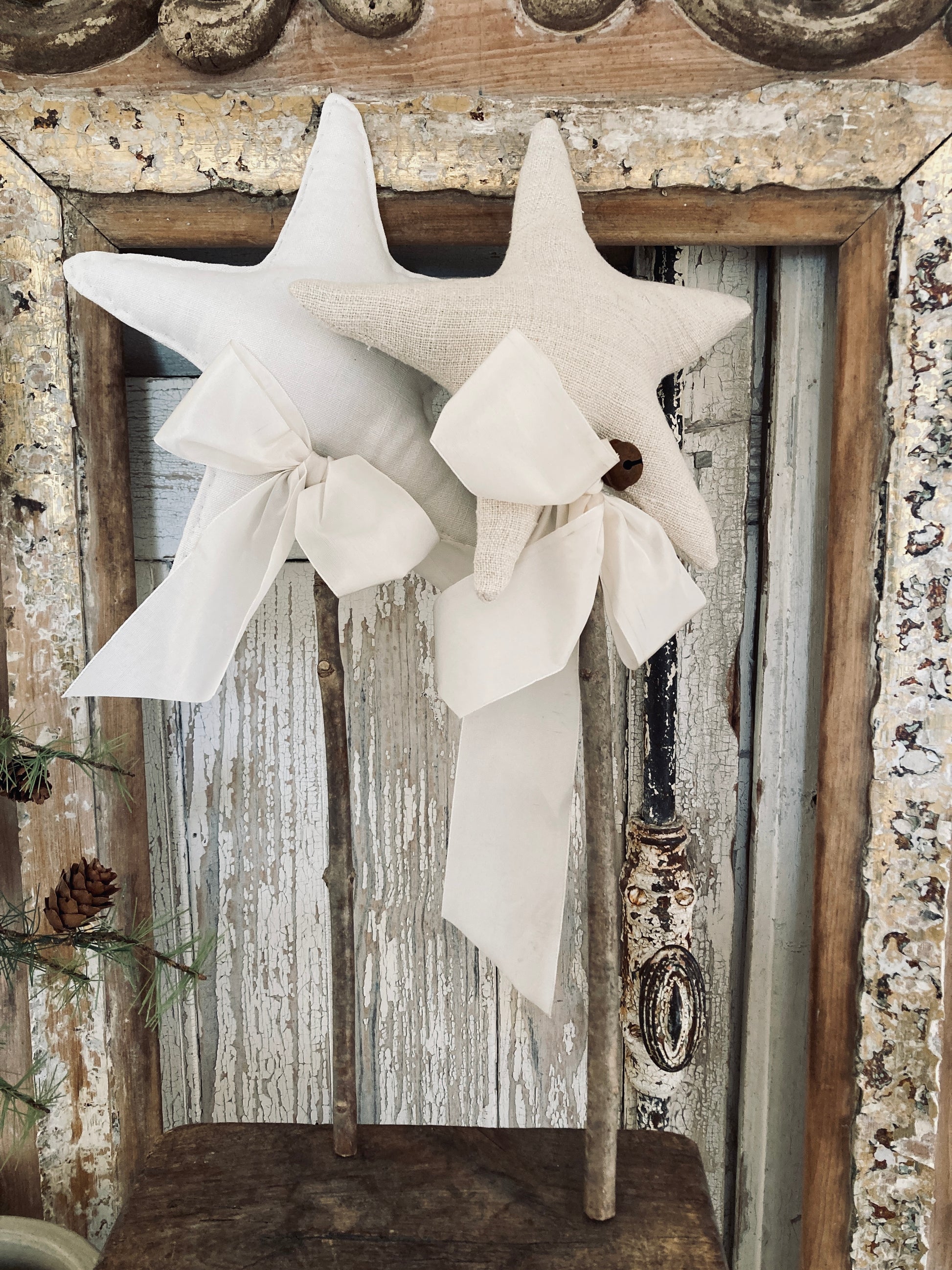 These stars are made with nineteenth century french smocks and old ribbon with a bell.