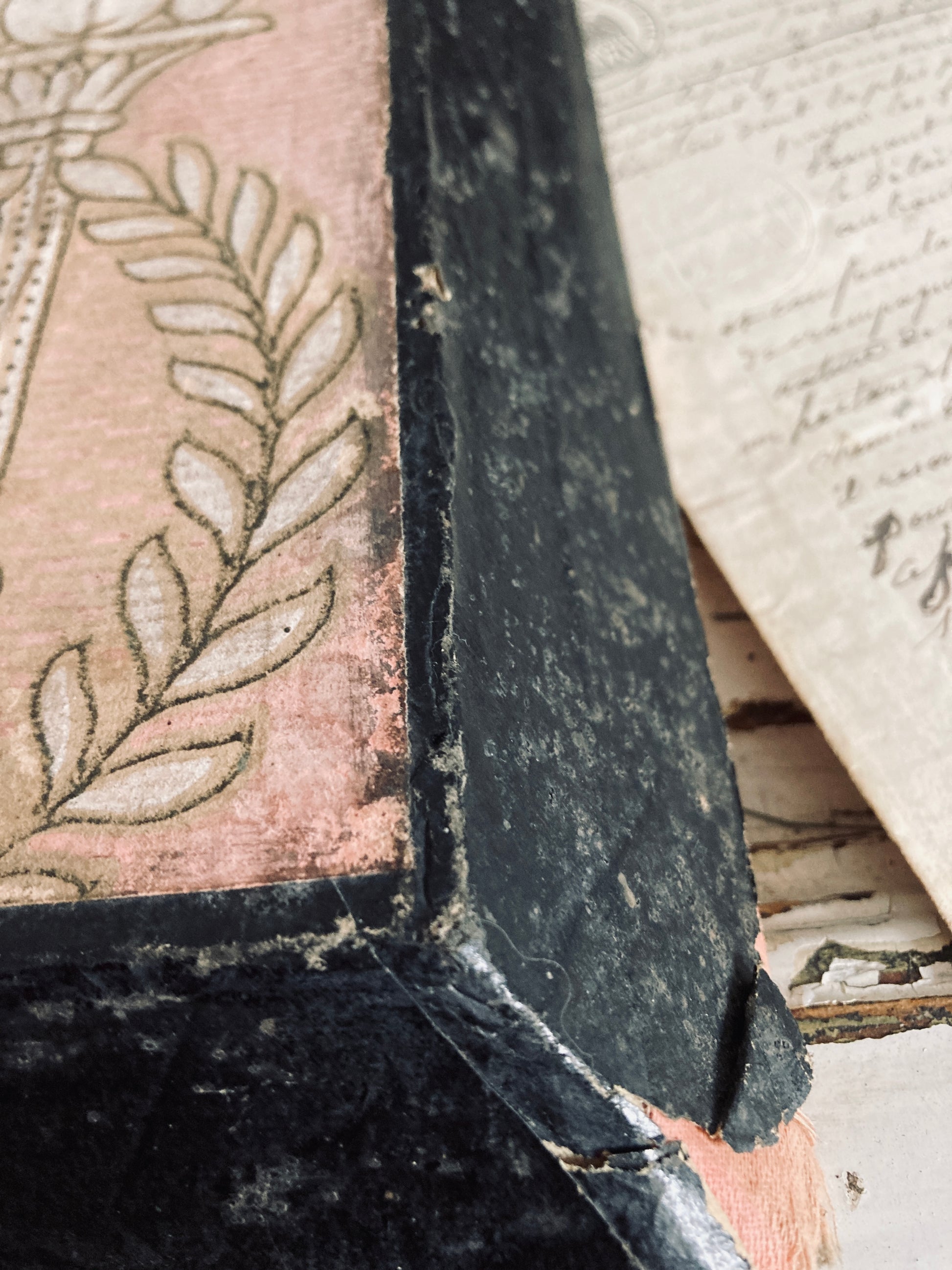 I absolutely love this antique French find. The faded pink back is as glorious as the front!